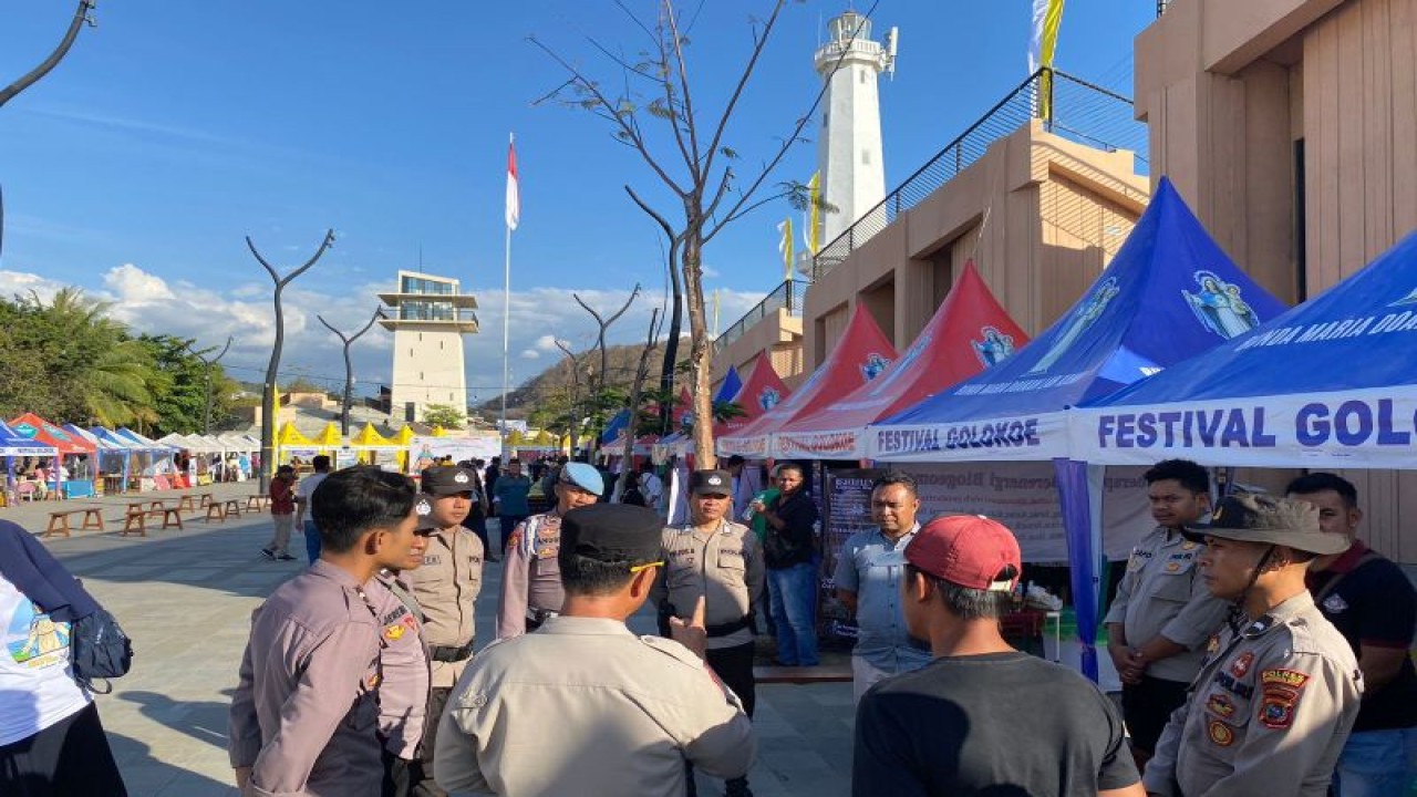 Untuk menyukseskan penyelenggaraan kegiatan pariwisata religi itu, para anggota polisi terbagi melakukan penjagaan di kawasan Waterfront City Labuan Bajo dan Gua Maria Golo Koe.