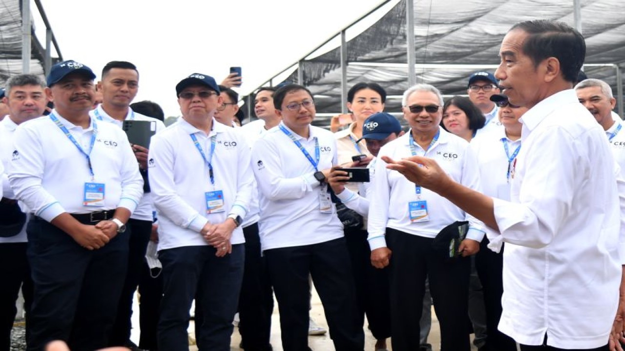 Bersama para pemimpin perusahaan tersebut, Presiden Jokowi berjalan menyusuri persemaian sambil menjelaskan sejumlah hal terkait persemaian dan pembangunan Ibu Kota Nusantara (IKN).